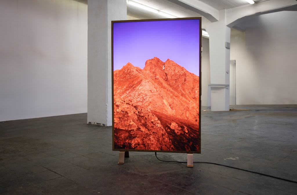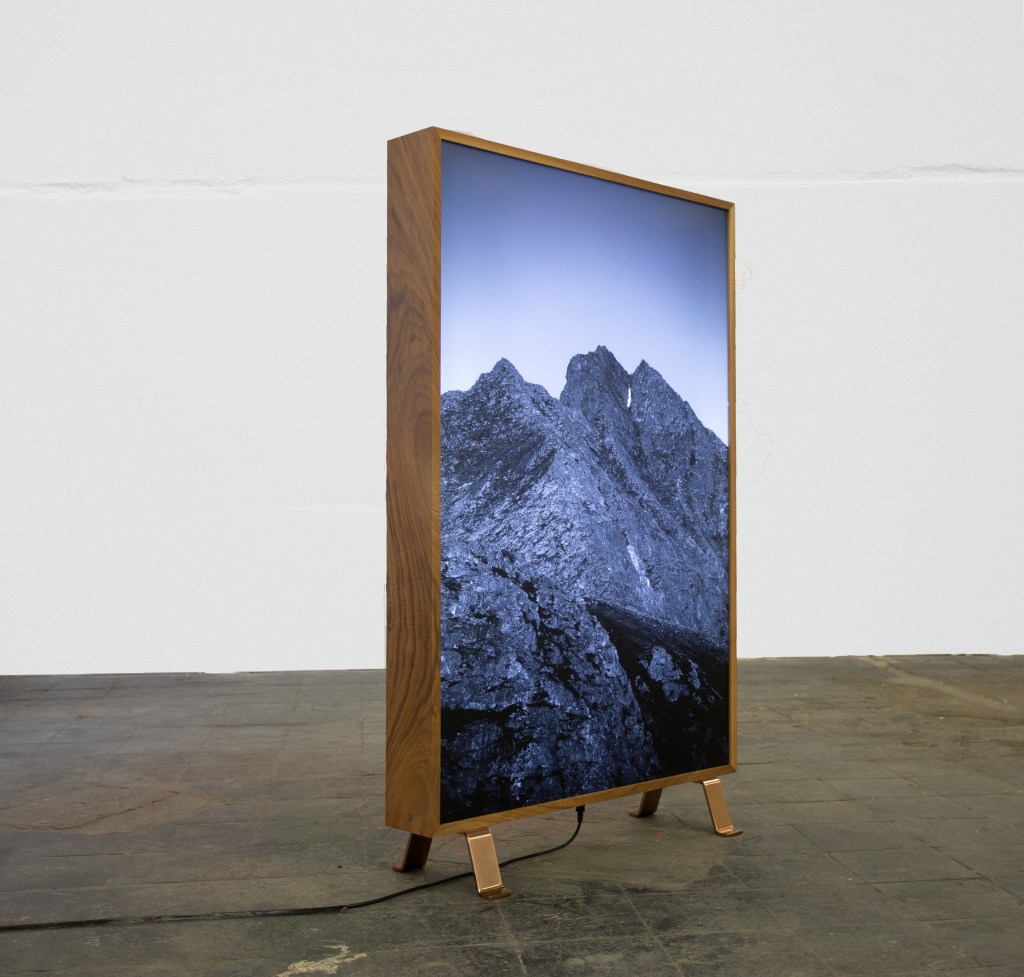 Secret Mountain website van Margriet van Weenen Op volle zee. Omsloten door water en lucht. Vol en leeg tegelijk. Het enige dat er is, is perspectief tot de oneindige horizon in een cirkel om mij heen. Margriet van Weenen Light box Midnight Sun 150x 100 cm Dubbel sided.