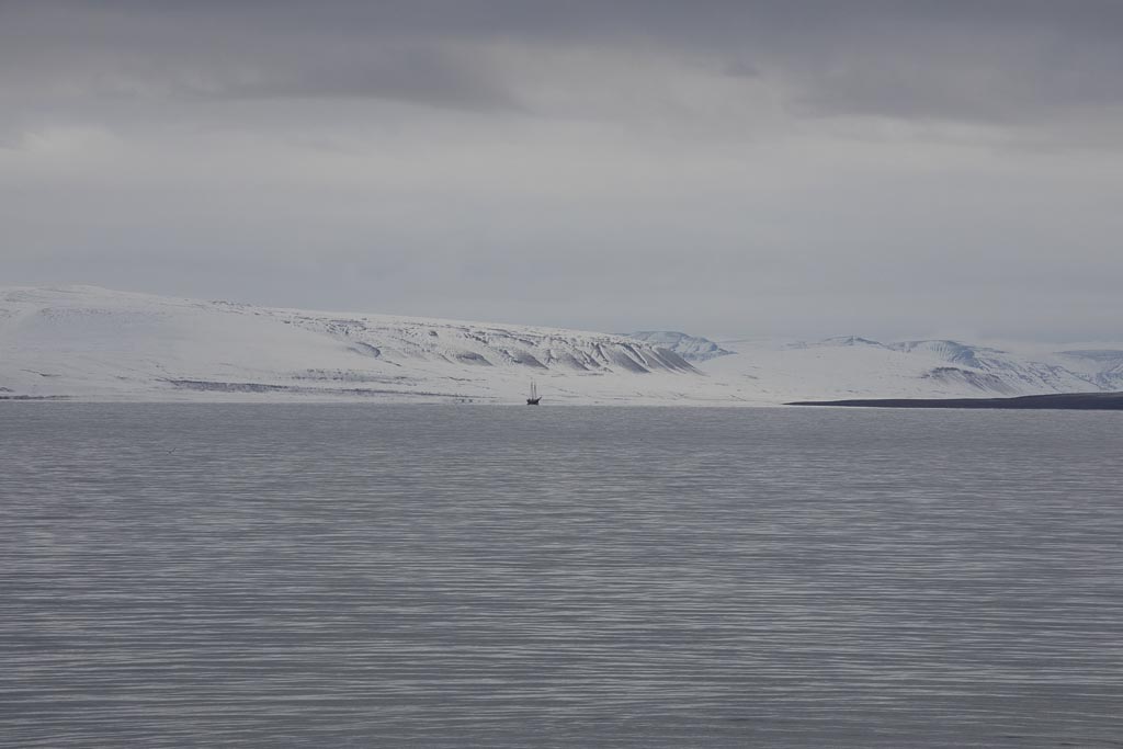 Because of my research I have made a journey to Svalbard and then sailed back home to Harlingen in the Netherlands. I took twenty of your photographs from the archive with me as well as your book, The fiord region of east Greenland. My intention on the journey was to have a ‘conversation’ with you about our mutual interest in photography and the northern landscapes. We connect through photography, through the landscape, through geology, through the ice, through the polar wind, through the sea. I want to tell the story of the landscape that is so fascinating to both of us. Allow me to share a few of my experiences: