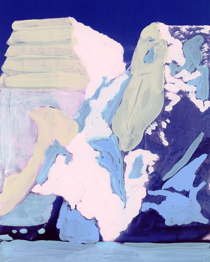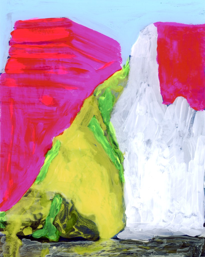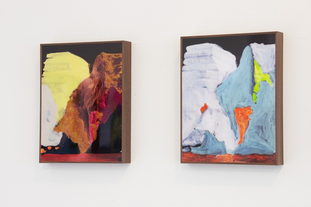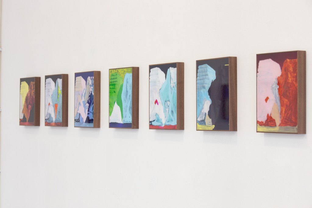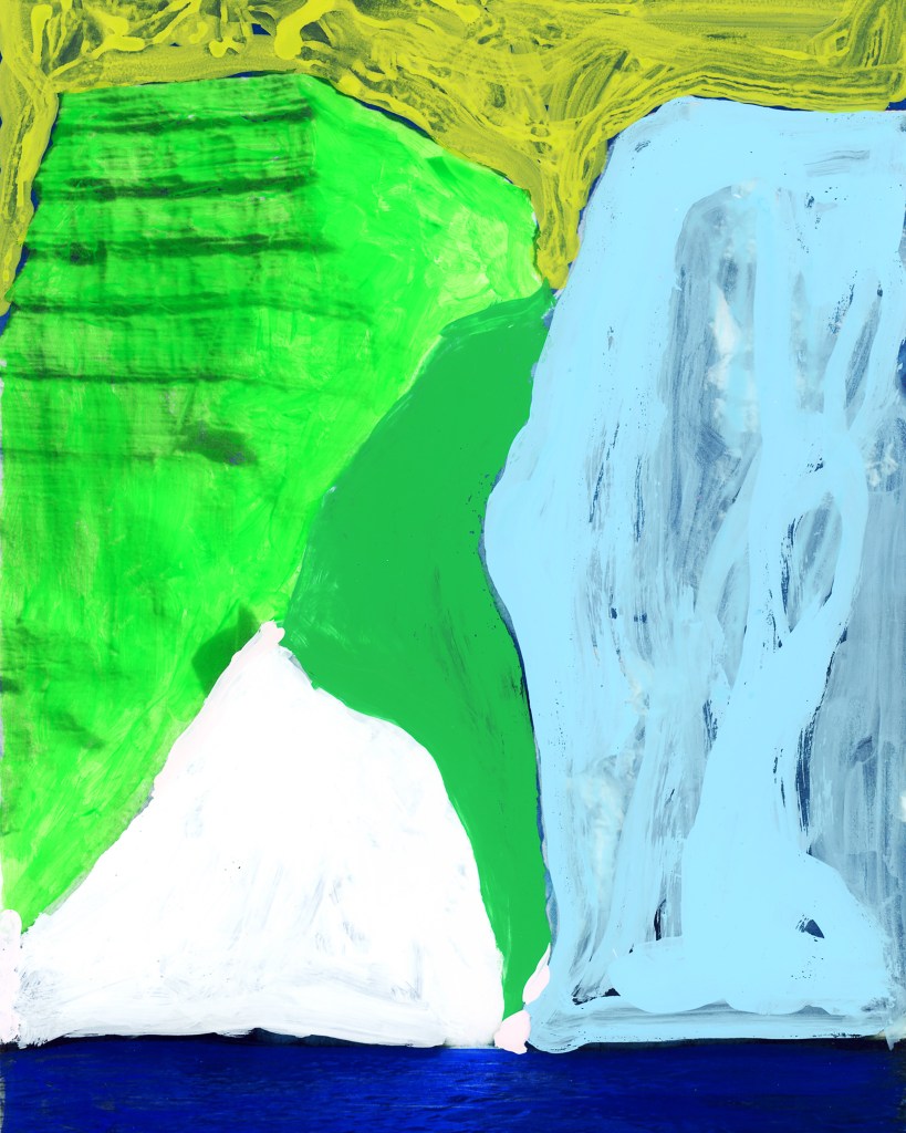 ICE BERG page 106 originated from a found photograph of an iceberg. The photo comes from the book The Planet Earth: Glaciers, published in 1983, the year I was born. In the early years, the “Ice Patrol” attempted to mark the most dangerous icebergs, but this proved to be an impossible task due to the constantly changing shapes of the icebergs. Until the mid-1960s, these markings were done with paint. This historical fact serves as the inspiration for the artwork ICE BERG page 106. The piece was created through a painterly process with a photographic finish.